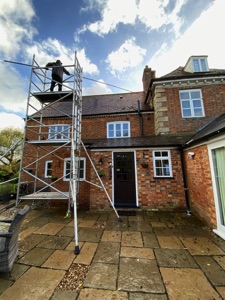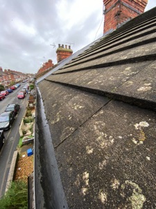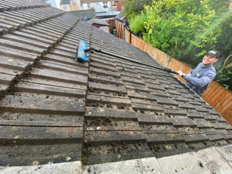 Using high reach scaffolding where necessary, the roof is cleaned with specialist equipment. It is then treated with environmentally sympathetic chemicals to keep your roof looking better for longer. The effect of the chemicals takes a few weeks to give the best results. The gutters are also cleaned as part of the process.